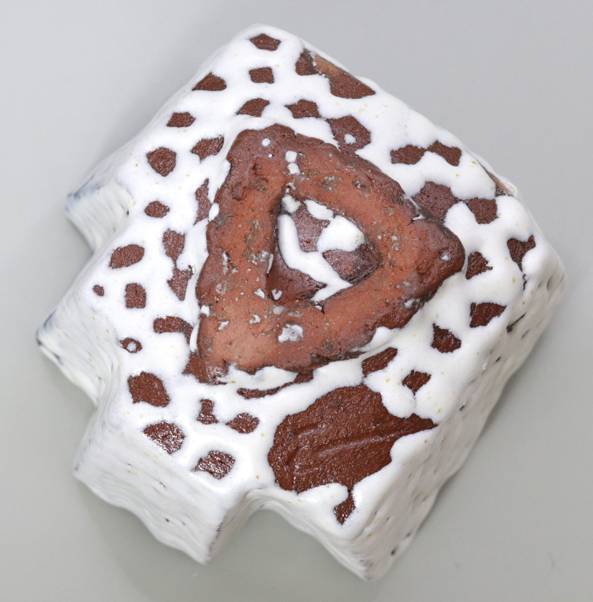 全面を覆う藁白釉は、降り積もった新雪のような純白の肌合いを湛えています。藁灰に含まれる鉄分が炎の作用で黒く結晶し、白地に墨色の斑点を散らすことで、単色では得難い奥行きとリズムが生まれました。釉層には細かな貫入がほのかに走り、使用を重ねるうちに茶が染み入り、雪面に淡い影が差すような景色が育っていきます。
