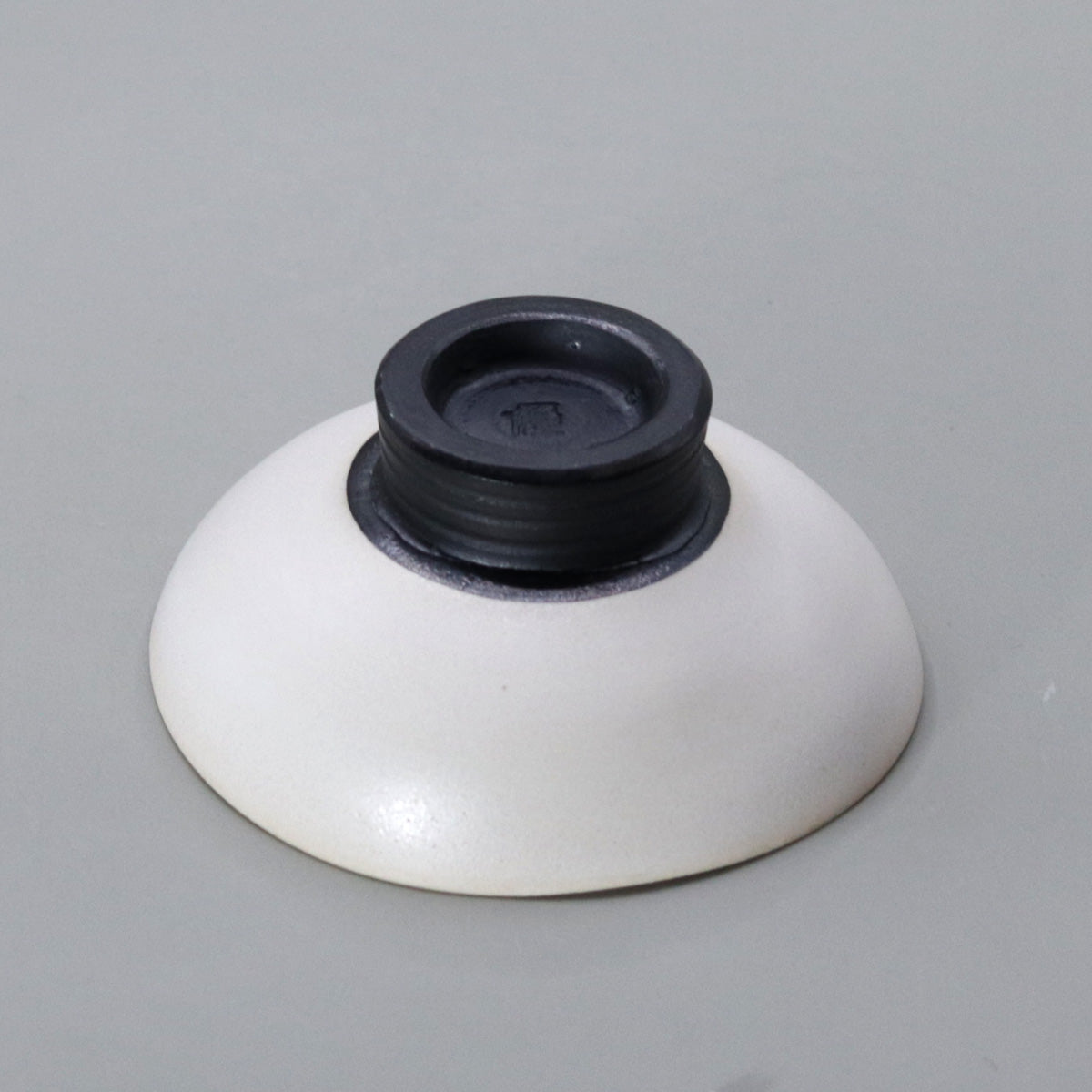白釉配合:長石を主成分とする半磁器胎に、酸化焼成でやや温かみを帯びた乳白釉を掛け、真っ白になり過ぎない柔和なトーンを意図。