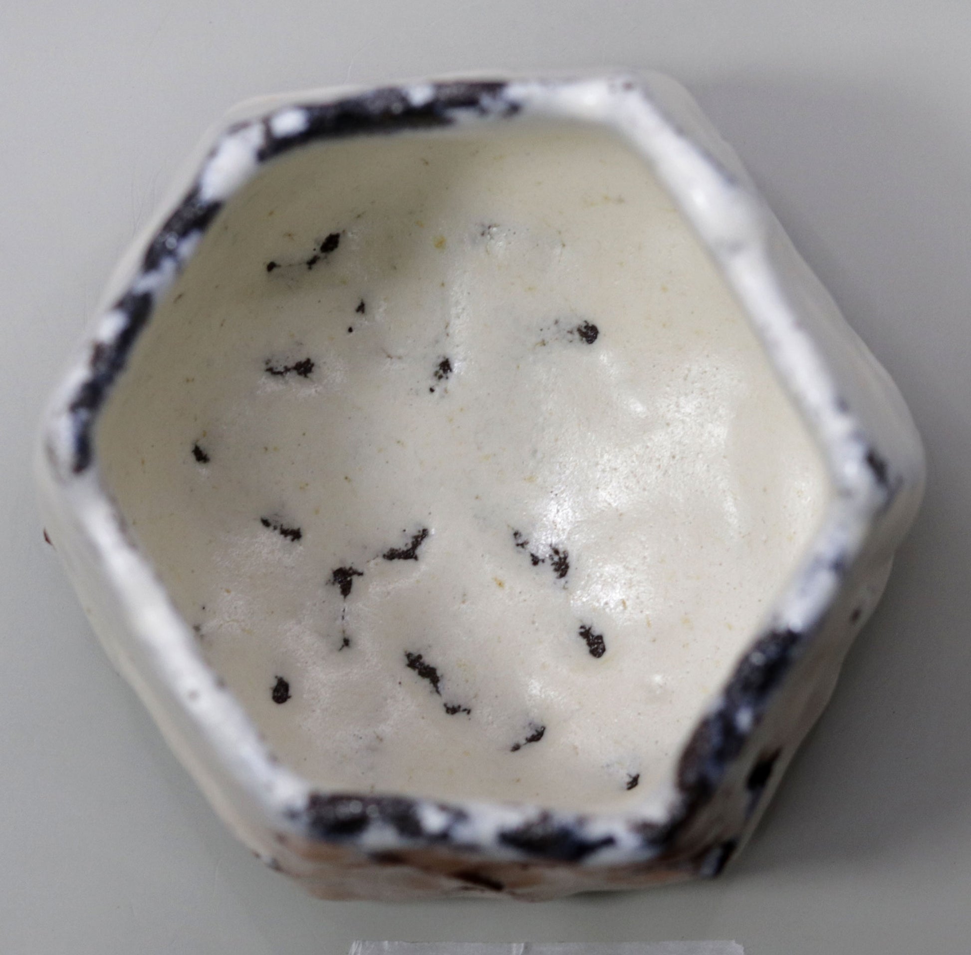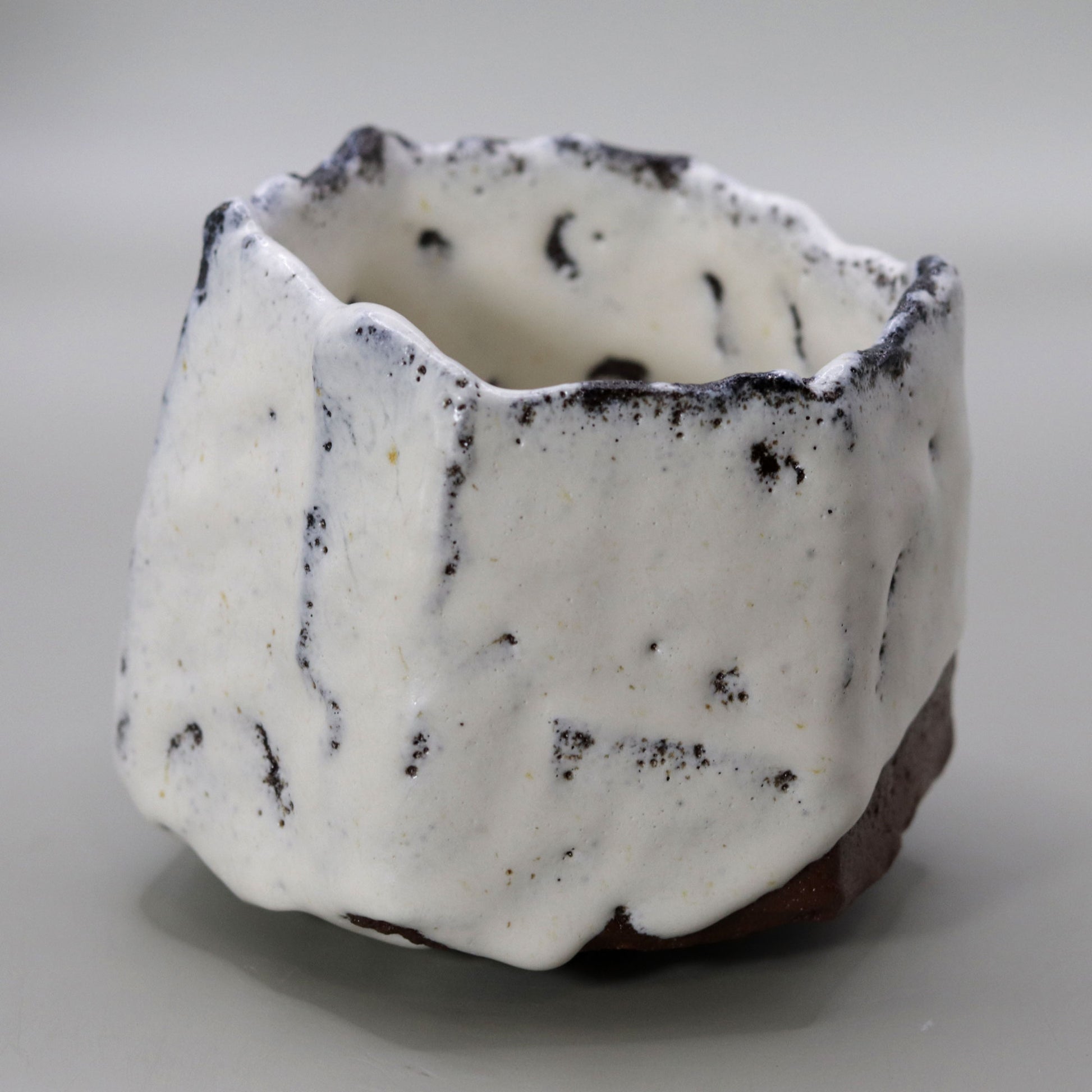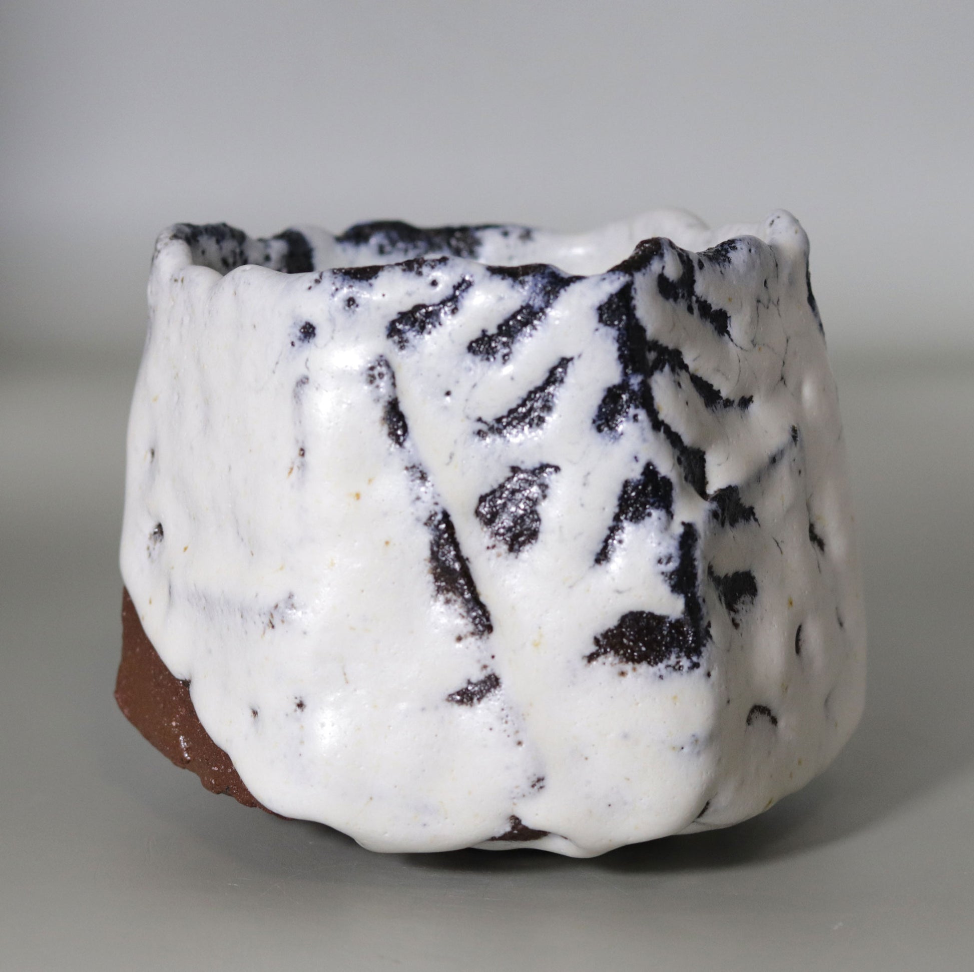 西端正様が手掛けた丹波藁白釉茶盌は、伝統の中に革新を見せる独自の魅力を放っています。その中でも特に目を引くのは、六角形の面取りが施された斬新な形状です。この面取りは、茶盌に独特の立体感と動きを与えており、見る者に新鮮な印象を与えます。通常の丸みを帯びた形状とは異なり、幾何学的なフォルムが現代的な美しさを醸し出しながらも、伝統工芸の技術がしっかりと息づいています。