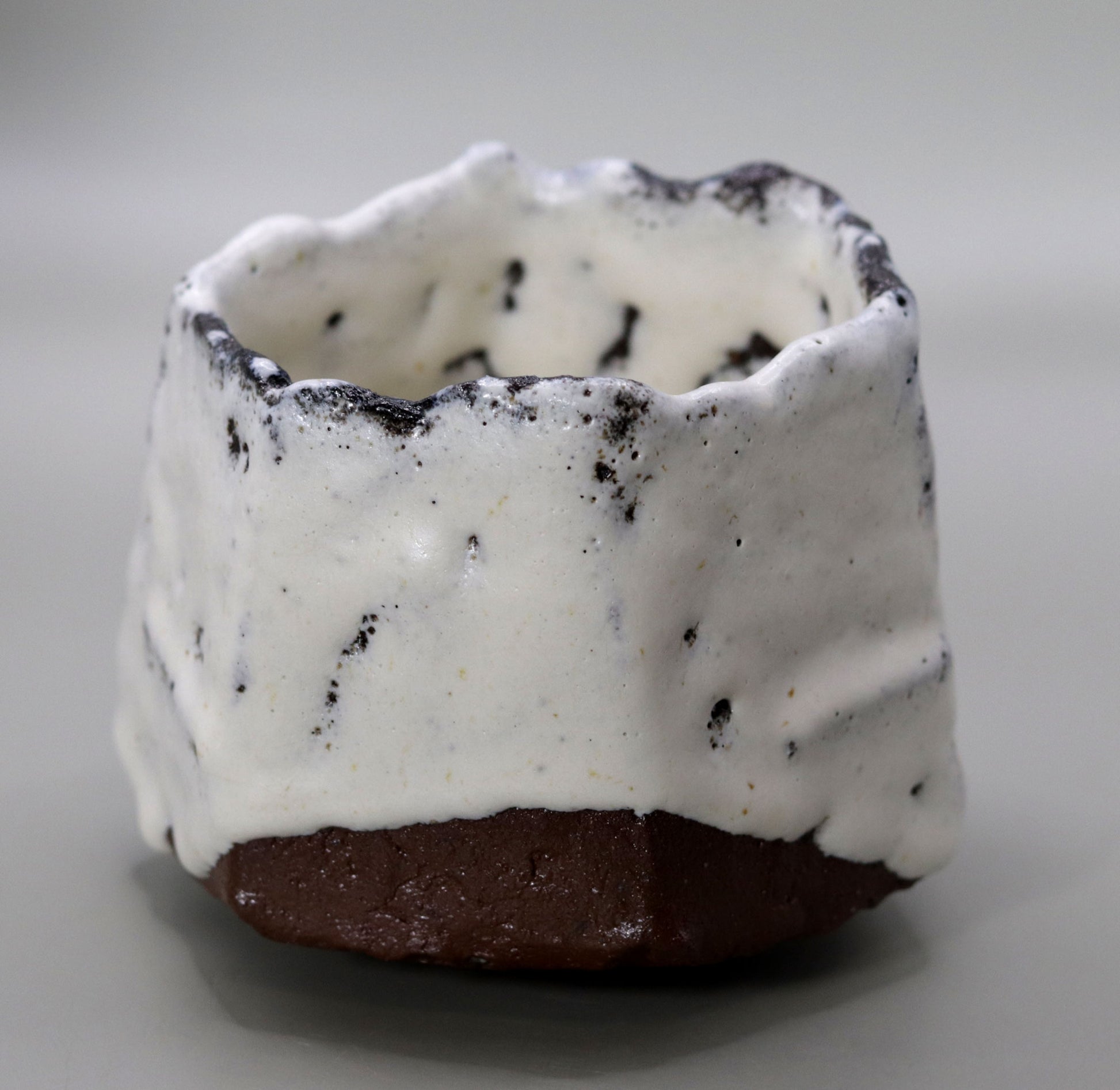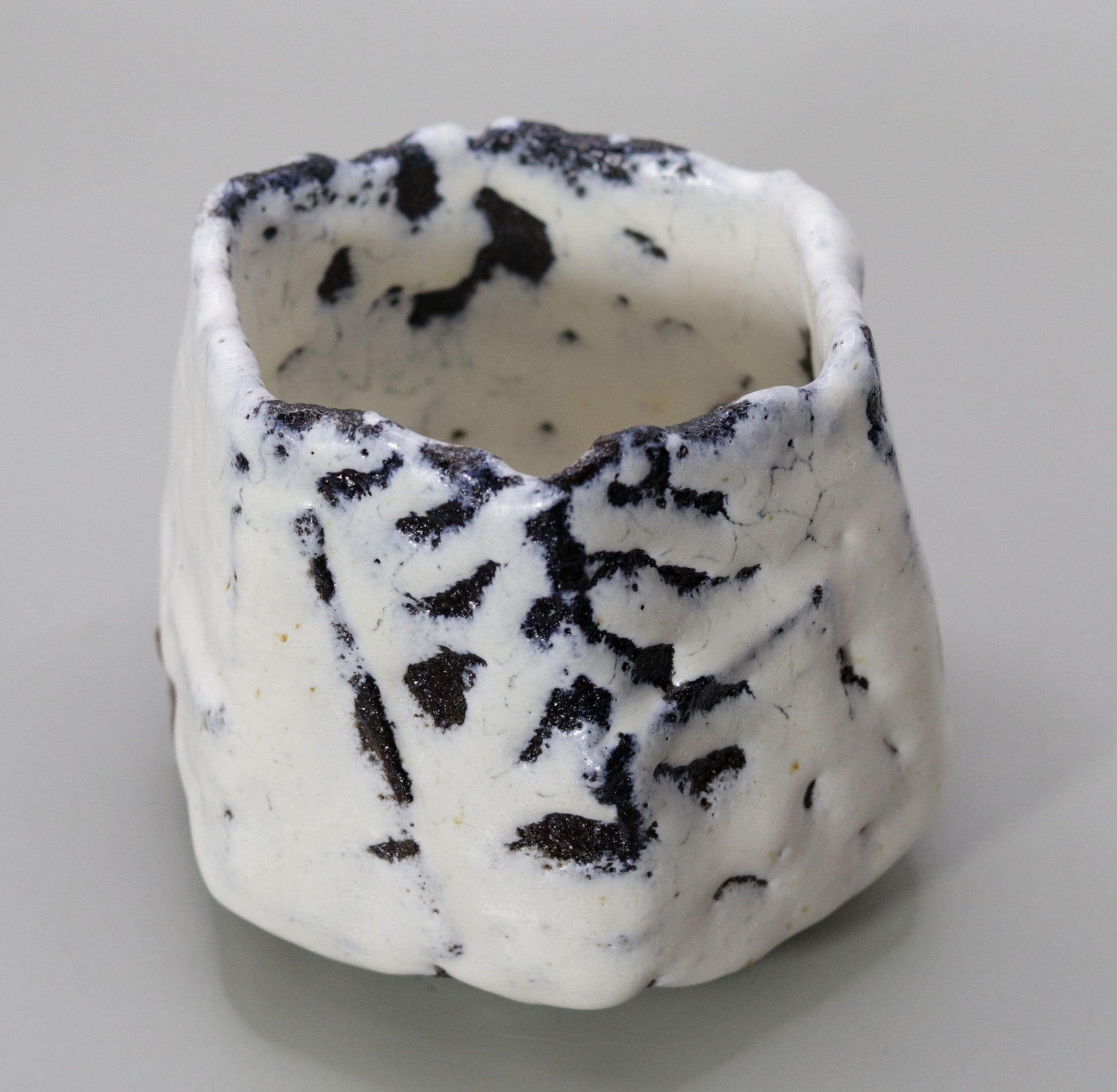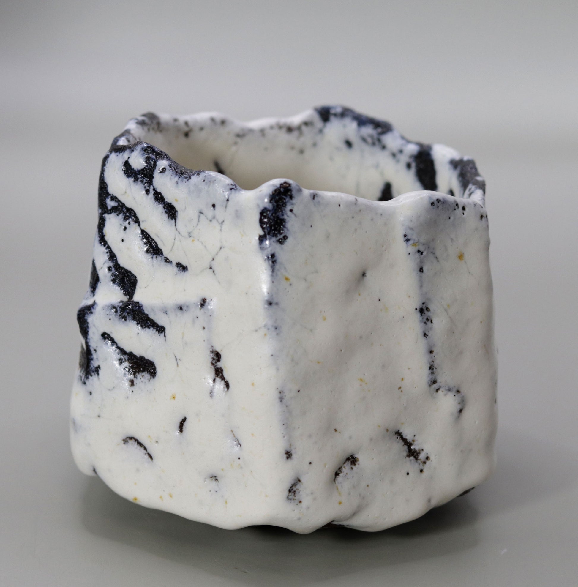 西端正様が手掛けた丹波藁白釉茶盌は、伝統の中に革新を見せる独自の魅力を放っています。その中でも特に目を引くのは、六角形の面取りが施された斬新な形状です。この面取りは、茶盌に独特の立体感と動きを与えており、見る者に新鮮な印象を与えます。通常の丸みを帯びた形状とは異なり、幾何学的なフォルムが現代的な美しさを醸し出しながらも、伝統工芸の技術がしっかりと息づいています。