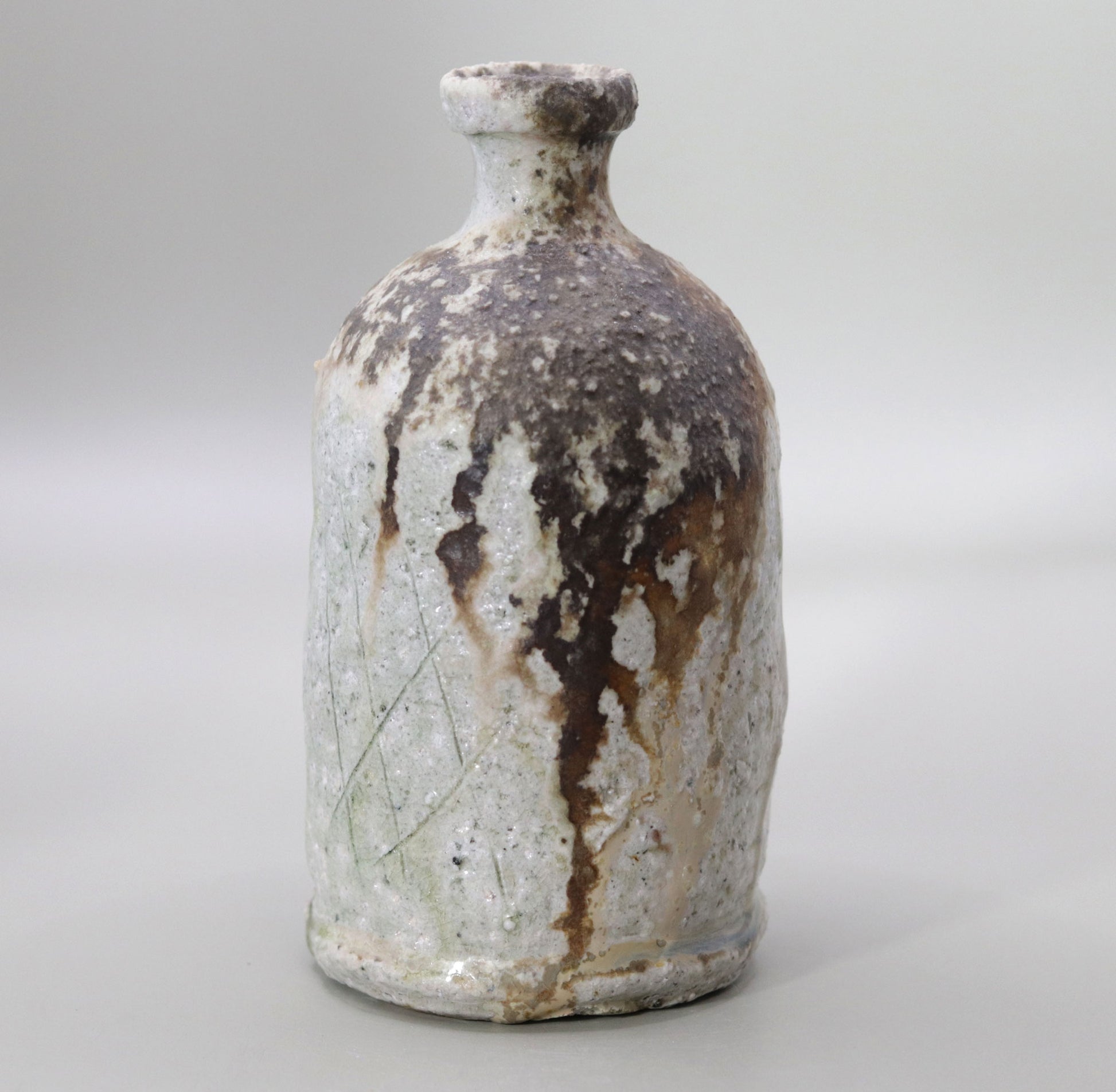 この徳利は、実用品であるだけでなく、現代アートとしても高く評価される作品です。伝統的な技法を用いながらも、自然が生み出す予測不能な美しさは、まさに一つの芸術作品です。置かれる空間に独特の存在感を放ち、見る者に深い感動を与えるこの徳利は、丹波立杭焼の持つ素朴な魅力と、自然が作り出すアートとしての美しさを見事に融合させています。