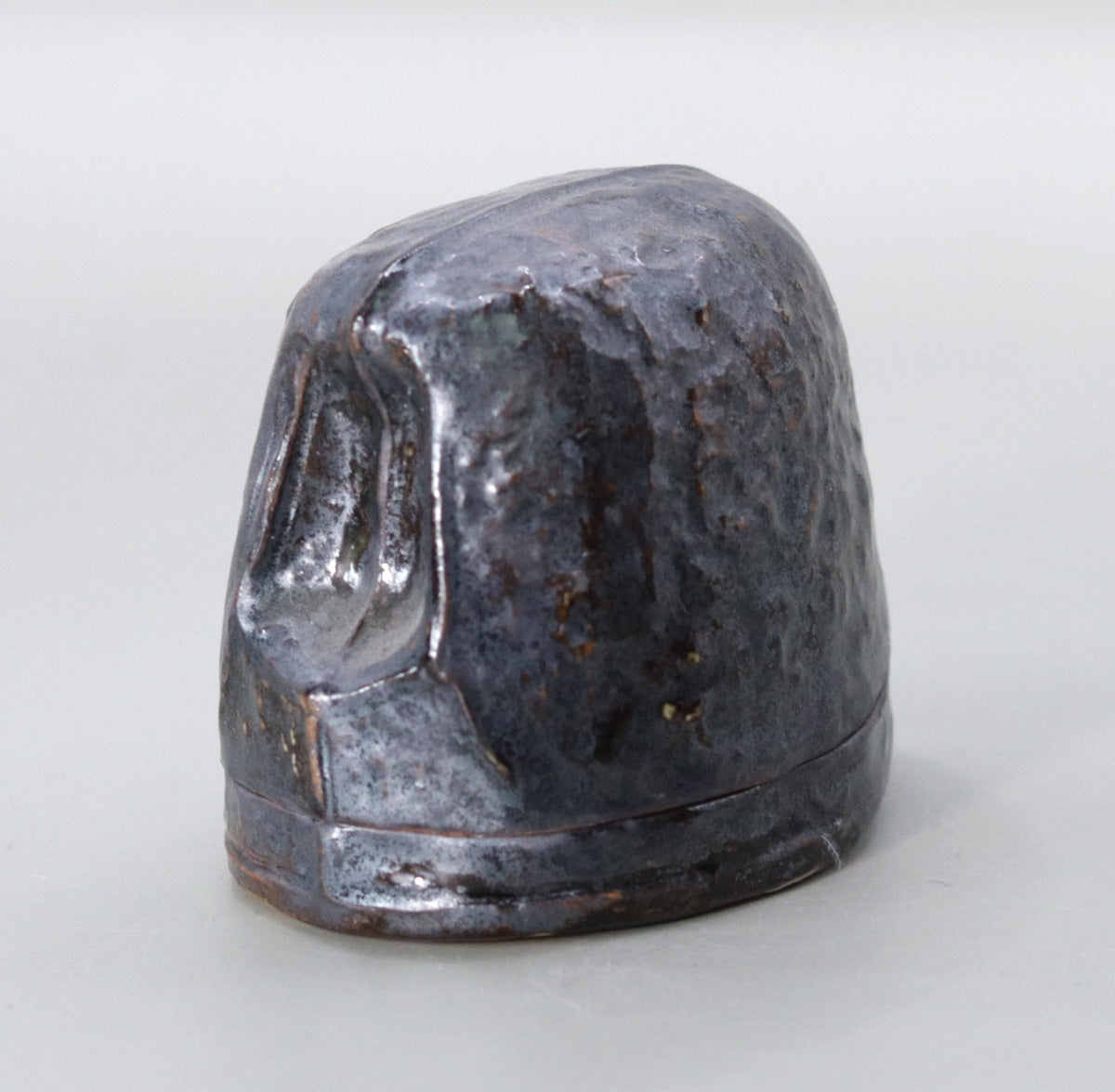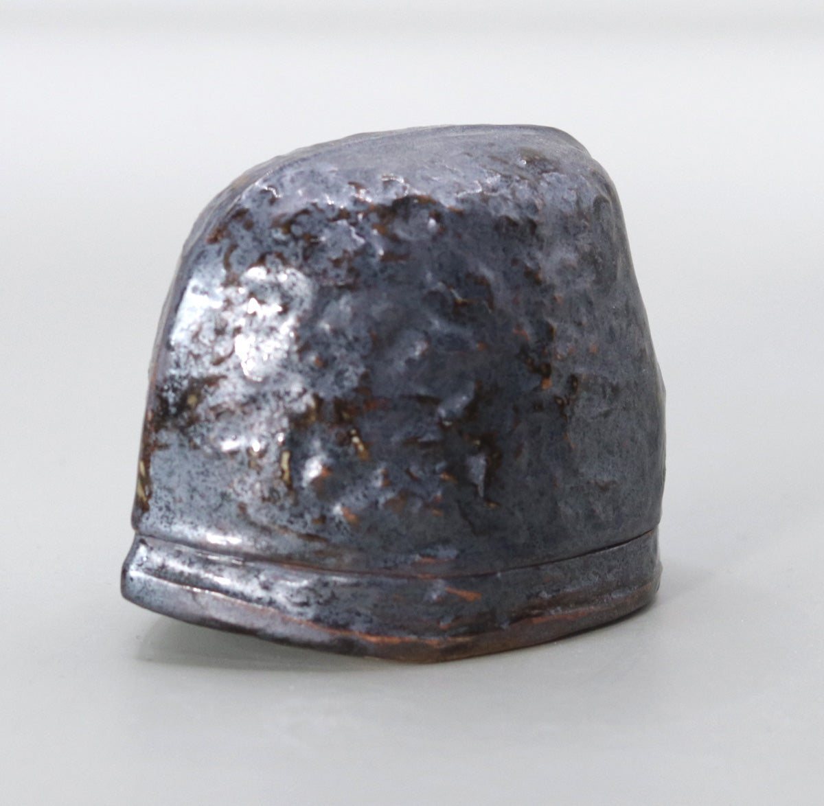 「烏帽子香合」は、平安雅楽の幽かな余韻を茶室に運ぶ希少な逸品です。蓋を開けば立ち上る香煙が烏帽子の奥へ流れ込み、古代の貴人が髪を整える静寂の情景を呼び覚まします。尾西楽斎様ならではの精緻な造形と青鉄窯変の深い光沢を、ぜひ晴の茶事や節句の席でご堪能くださいませ。