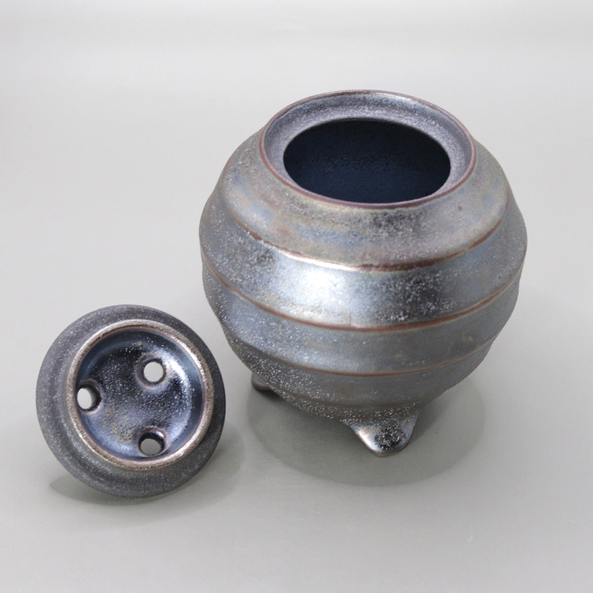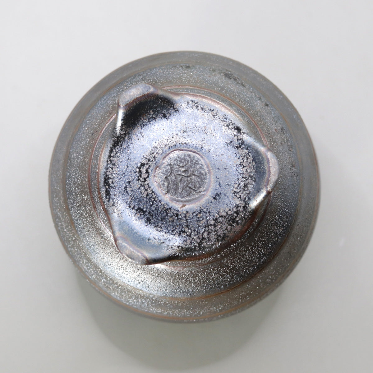 夜空の深みと星屑の輝きを宿した天目釉香炉。焚きしめた香木が銀灰の釉を透かし、ゆらぐ煙とともに席中に幽玄を呼び込みます。一炷ごとに変わる光と香の重なりを、どうぞ末永くお愉しみください。