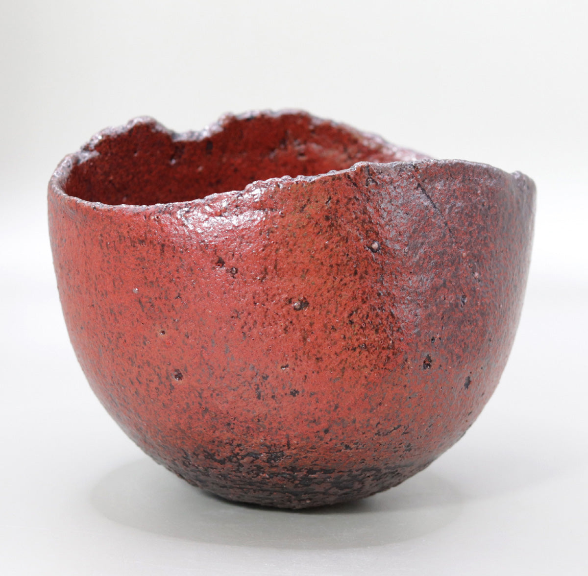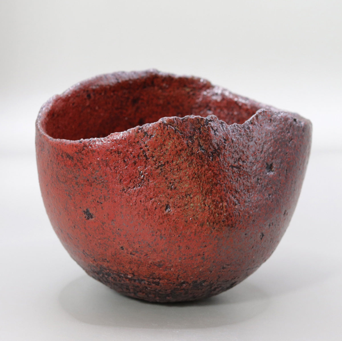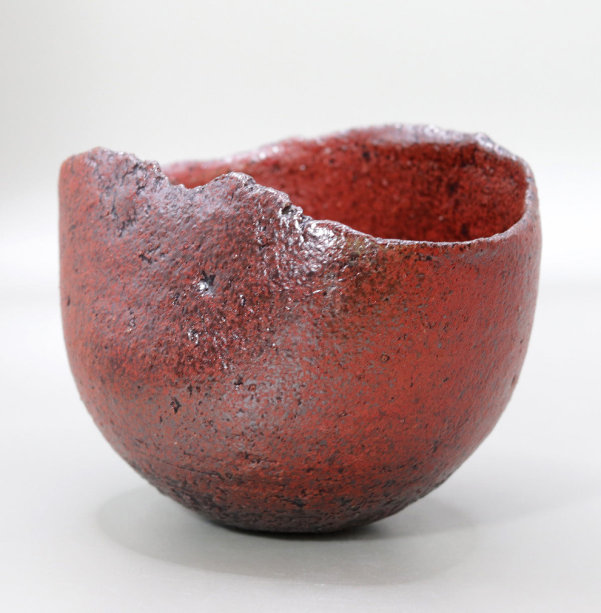 緋色は「陽」の華やぎを象徴しつつ、マットな質感と鉄斑の陰影がわびの静寂を呼び込みます。西端正様は「侘び寂びの中に潜む生命の熱」をテーマに、赤一色でありながら複雑な表情を引き出し、土と炎のドラマを凝縮させました。