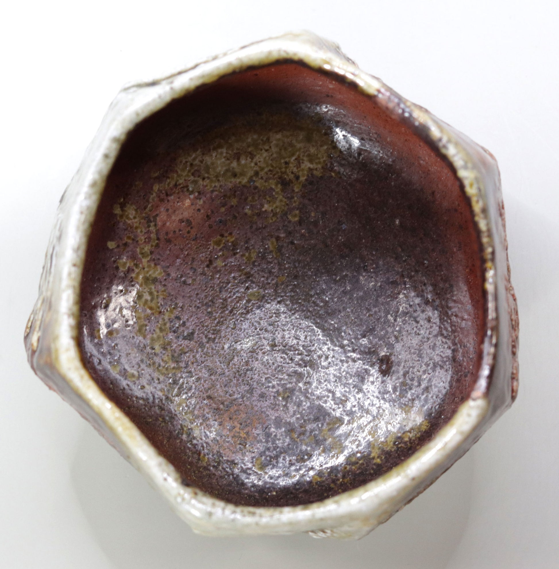 西端正様による丹波自然釉茶盌は、丹波焼の伝統と自然の力が見事に調和した逸品です。この茶盌の特筆すべき点は、その力強い「割り高台」と自然釉の美しさです。特に高台部分に注目すると、単なる実用的な要素を超え、茶盌全体の造形美を高めるデザイン的な重要性が浮かび上がります。