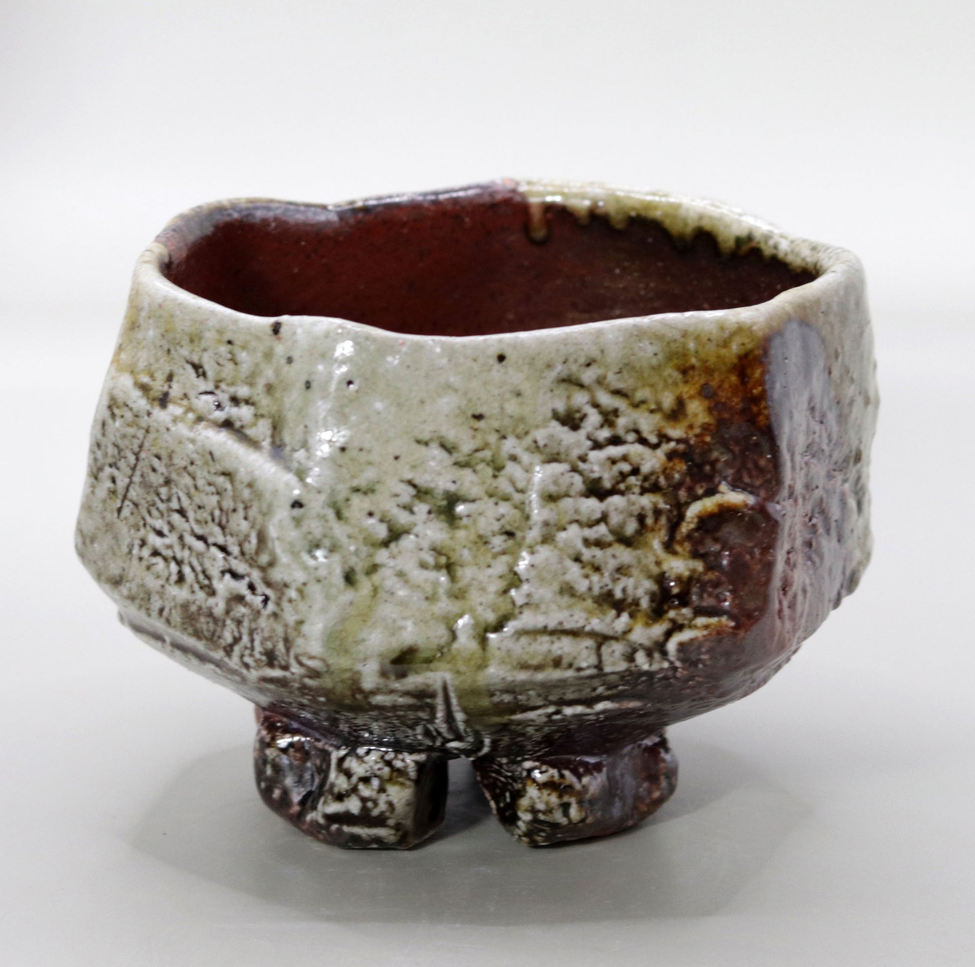 割り高台はこの茶盌に独特の迫力を与えています。茶盌の高台は、単に器を支えるだけでなく、茶盌全体のバランスを決定づける重要な要素です。特に割り高台は、その高台の一部に切り込みが入れられているのが特徴で、これは視覚的にも印象的なだけでなく、実用的な面でも優れています。この「割り高台」には、器を積み重ねる際に安定感を保つためや、焼成時に火の通りを均等にするという実用的な理由があるとされています。また、萩焼のような高台に切り込みを入れる伝統は、朝鮮の李朝時代の技法から伝わったものとも言われています。